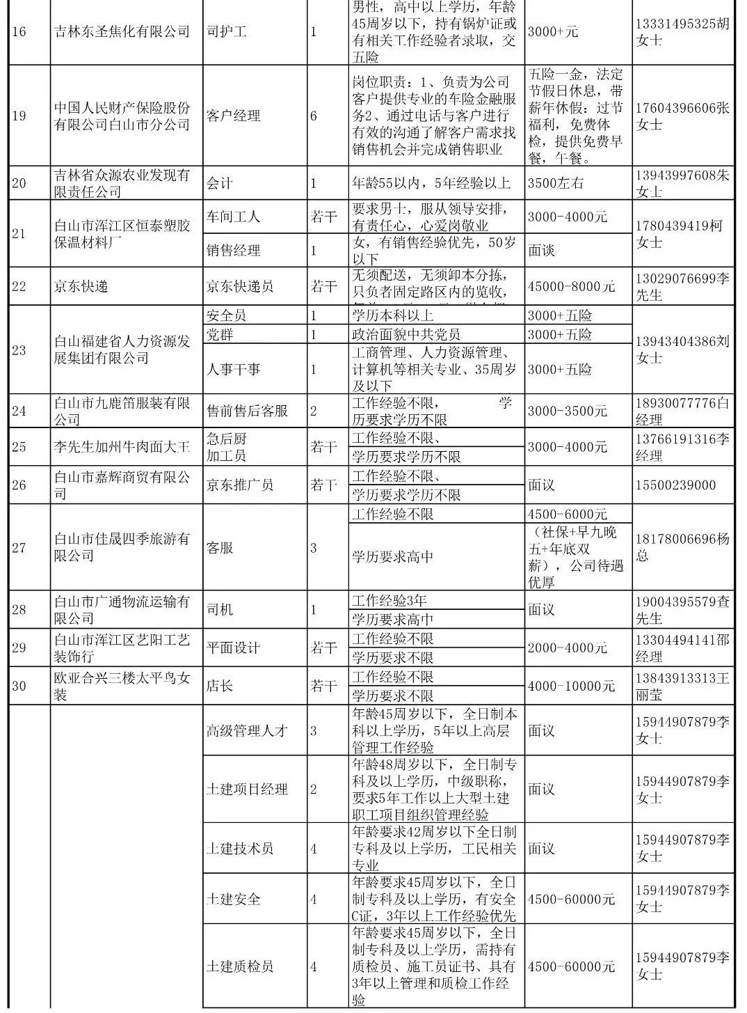 本期市总工会为大家带来了白山地区33家企业的57个招聘岗位,在新春伊始之际,为广大职工群众送上“娘家人”的温暖与支持。