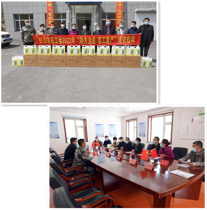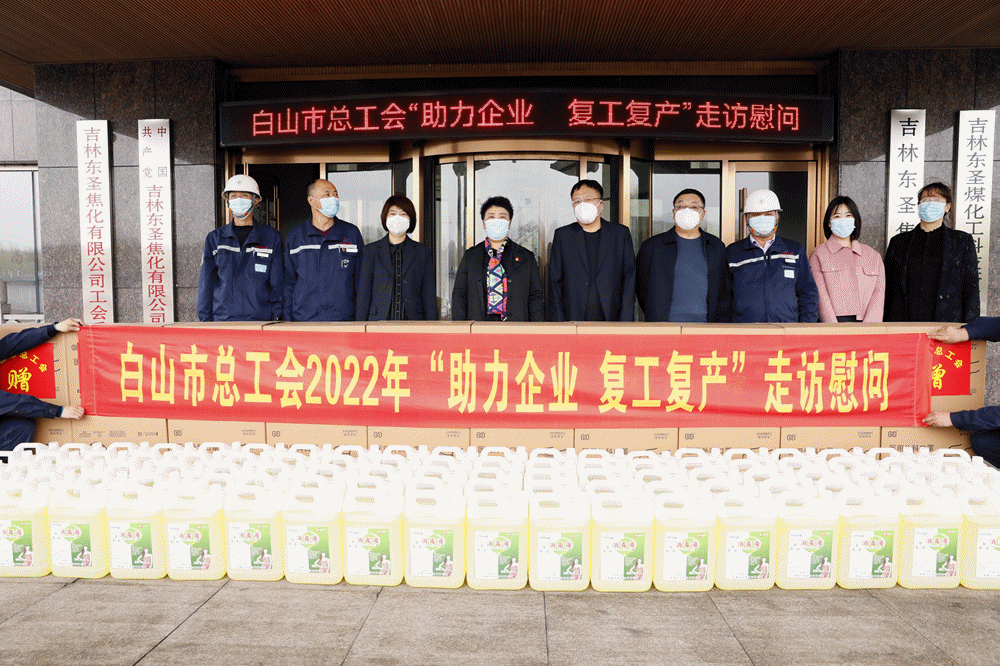 4月26日,李红光一行先后来到吉林东圣焦化有限公司、市喜丰塑料股份有限公司、白山山水水泥有限责任公司,为他们送去了50000只口罩、2吨消毒液、0.5吨酒精、100瓶免洗凝胶和100份政策宣传袋。